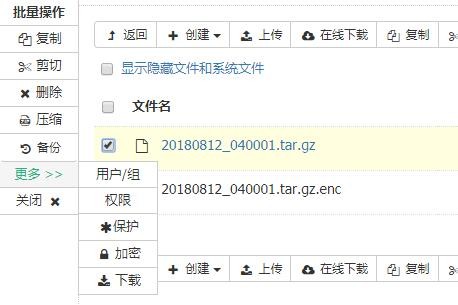 解密后没办法解压,真晕 面板的文件管理没有解压选项: 下载后用7zip也无法打开 edit by 10:53 发现文件管理有个解密选项,但是输入正确的密码,也无法解密,提示“Passwd Error”