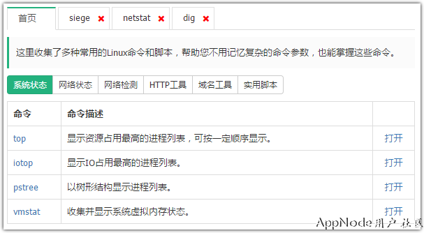 实用命令中收集了多种常用的Linux命令和脚本,帮助您不用记忆复杂的命令参数,也能掌握这些命令。