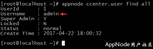 appnode ccenter.user find all