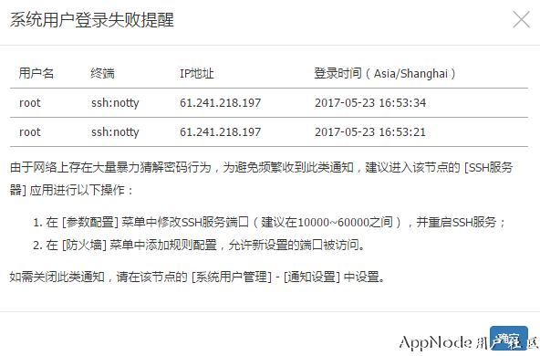 这是由于网络上存在大量暴力猜解密码行为导致的,可以点开通知查看详情,如: