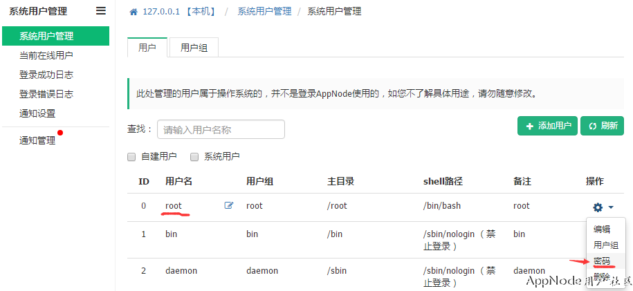 请进入【系统用户管理】,修改被攻击用户的密码(一般都是root),如:
