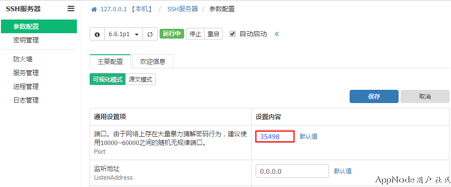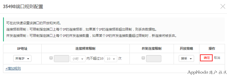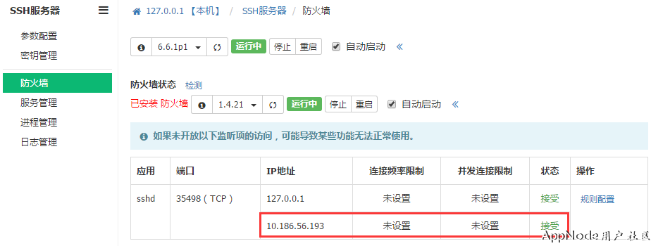 新端口设置完成并重启SSH服务后,请务必在【防火墙】菜单中添加规则配置,允许新设置的端口被访问,如: