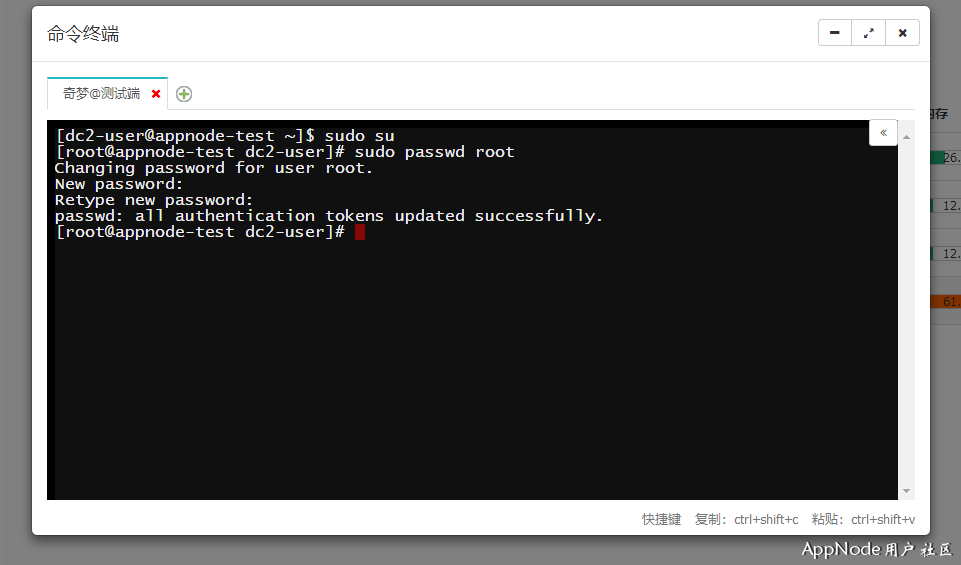 不过在使用appnode面板如果是挂在其他服务器控制端的节点,是通过ssh连接的;在使用过程中命令终端是通过SSH登录连接使用会比较麻烦;比如文件对传工具也连不了;可以通过以下办法获得root权限并重置密码来更换节点用root ssh连接;